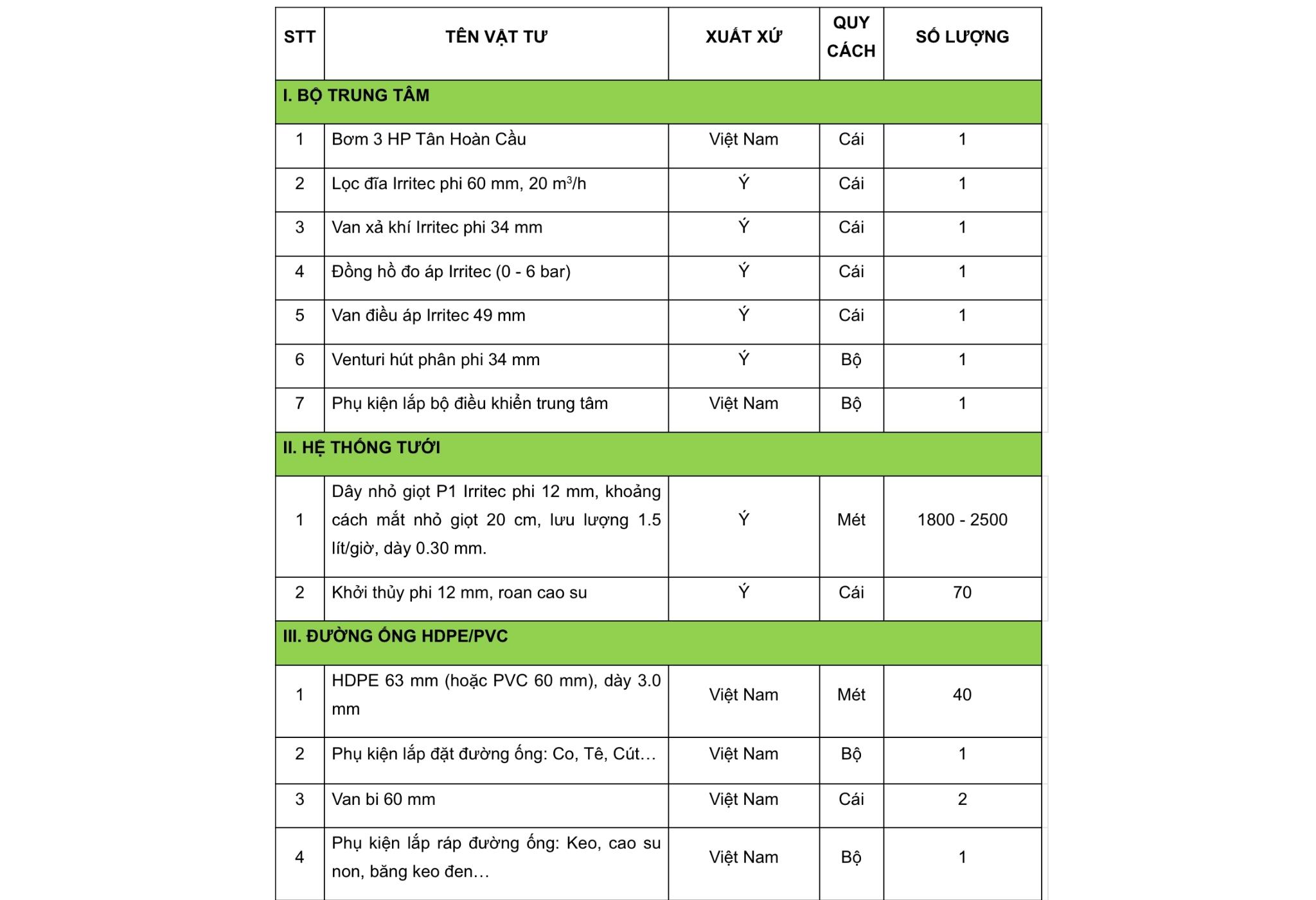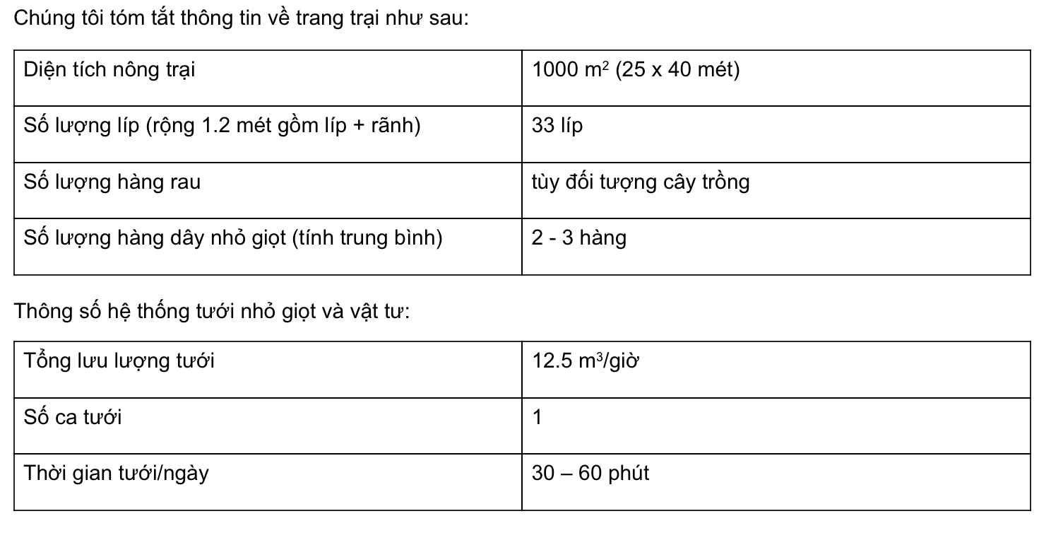 CHI PHÍ ĐẦU TƯ HỆ THỐNG TƯỚI NHỎ GIỌT CHO 1000M2 RAU MÀU